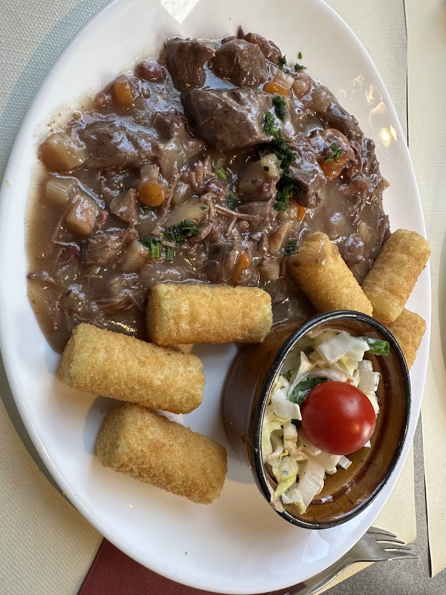 For those considering a meal, Philippe Lootens praised the lunch offerings: "Lekkere, smakelijke lunch, warm geserveerd," crediting the chef for delivering generous portions at democratic prices. Although Stephen Ellwood found the food satisfactory but on the pricier side, he appreciated the unique arrangement of their square table, which allowed all seven in his group to engage in conversation effortlessly.